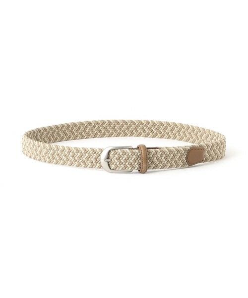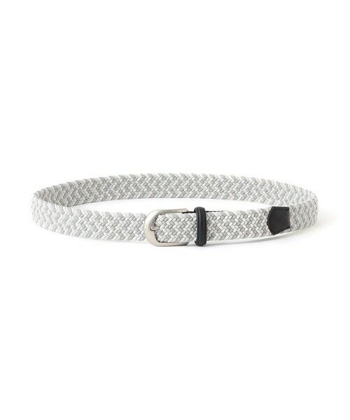 同系色4色のエラスティックコードでメランジ調に仕上がるよう織り込まれたベルト。革部には素上げ調のイギリスをイメージした仕上がりの革を仕様し、パンツの素材感やスタイルを選ばず幅広いシーンでご使用いただける作りになっております。※この商品はサンプルでの撮影を行っています。実際の商品とイメージ、仕様が異なる場合がございます。※サイズについては、仕様書のサイズを記載しており、多少の誤差が出る場合がございます。