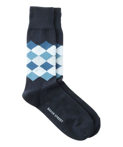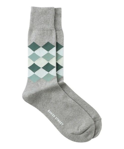 オーセンティックなダイヤ柄をボーダーに配列し、独特な色合いでモダンにアップデートした足元に遊び心を持たせるソックス。
