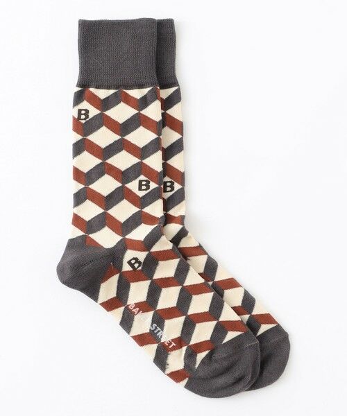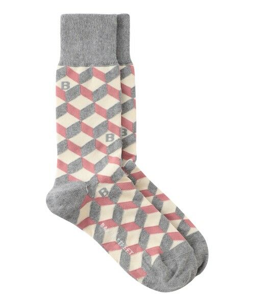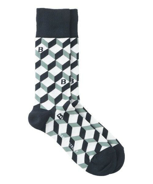 幾何学柄では代表的な柄の一つでもあるキューブジオメトリック柄ソックス。アヴァンギャルドになりがちな色目を現代のスマートポップカラーでまとめ、不規則に配置されたブランドイニシャルの「B」のロゴがさり気なくオリジナリティを演出しています。【参考サイズ】足サイズ目安:25cm〜27cm相当※この商品はサンプルでの撮影を行っています。実際の商品とイメージ、仕様が異なる場合がございます。