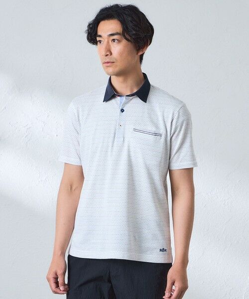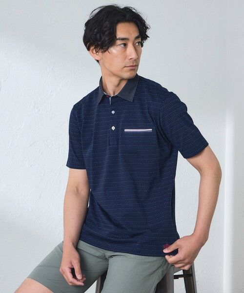 ドビーカノコ素材を使用したポロシャツになります。多色の色をジャガード編みにすることで、ドット柄を表現しました。襟周りには3種類の別布を、背当てやポケット口にレジメンタルストライプを使用する事で、ベイカー・ストリートらしい「遊び心」を加えました。また、ボタンの色味やそのつけ糸まで細部に拘っています。※この商品はサンプルでの撮影を行っています。実際の商品とイメージ、仕様が異なる場合がございます。