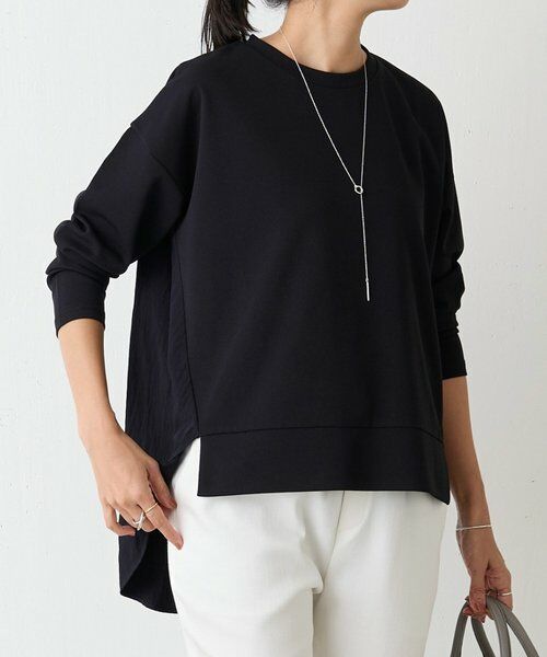 背中部分に布帛生地がドッキングされた1枚でコーディネートが決まるカットソー。