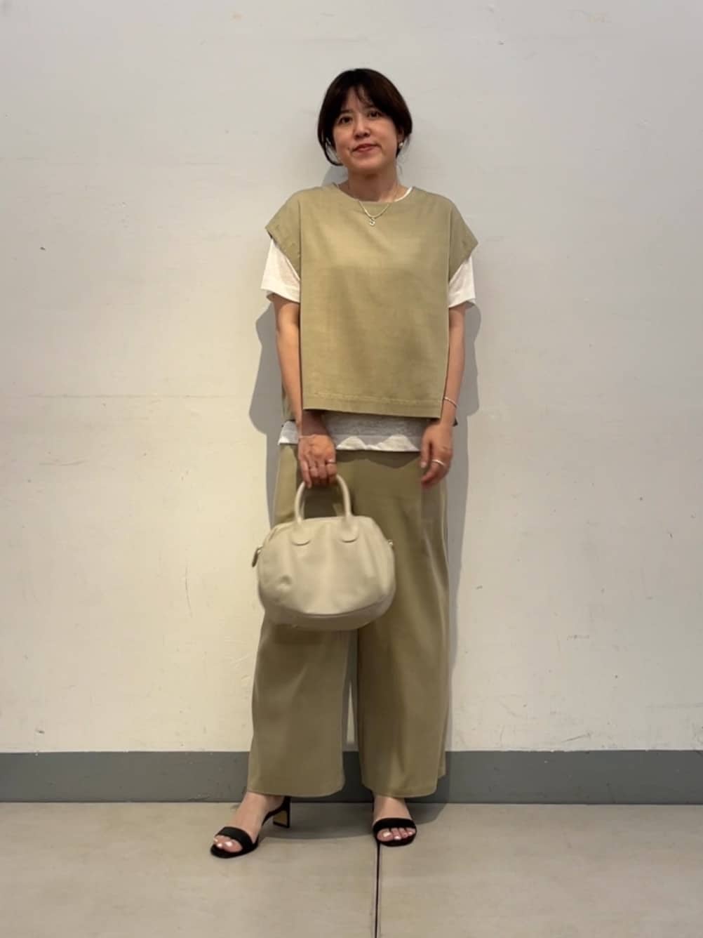 160cm ストレート イエベ春 \迷った朝に助かる/ ✔前後2WAYで着られて ✔ベストにも羽織にもなる ✔光沢感ありで、Tシャツに重ねるだけでもうキマる👏 今日は新色ベージュを、 リネンT&ウエストリブパンツで 爽やかにまとめてみました🌿 涼しげな白Tは、 肌当たりやわらかなカットソー生地。 腰まわりをふんわり隠してくれる丈感も◎ パンツは脚のラインを拾わないのに、 太すぎずすっきり見え✨ 新色ベージュは抜け感もあって万能です! 最後に黒のサンダルと、 ころんと丸いミニボストンで ほどよく引き締めました🖤 シンプルだけど今っぽい、 大人の抜け感コーデ。 これ、きっとヘビロテします(笑)