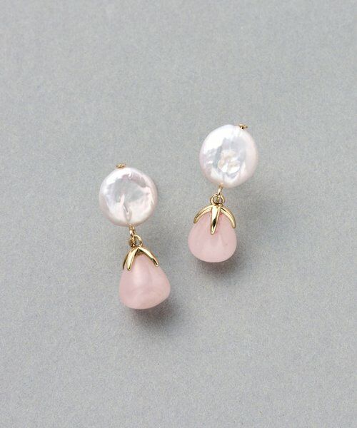 淡水パールの自然な光沢と、天然石のやわらかな色合いが調和した上品なドロップピアス。