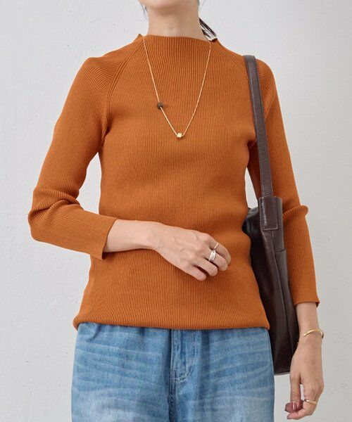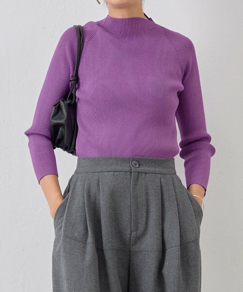 身体にほどよくフィットする細めのリブ編みが、すっきりとしたシルエットを演出するハイネックニット。