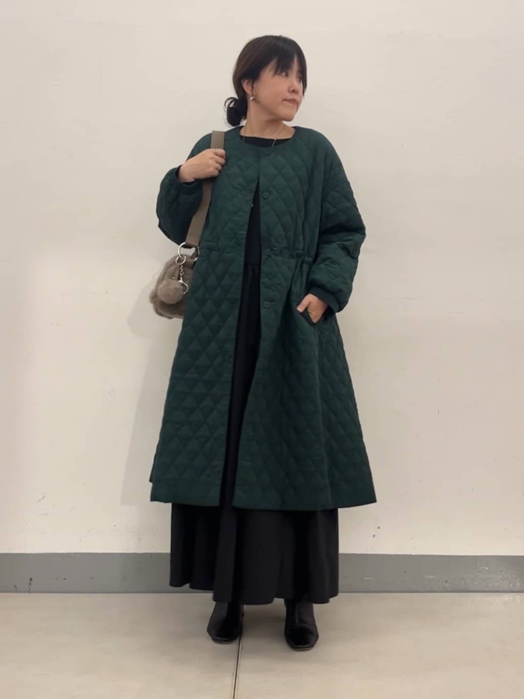 160cm ストレート イエベ春 ちょっとそこまで、も ちゃんとお出かけ、にも。 新色グリーンのキルティングコートは 軽く羽織れて 女性らしいシルエットが◎ ワンピースは黒で引き締めて バッグはモカのふわふわで 優しさをひとさじ。 ノーカラーだから ストールを巻いたり フード付きトップスを重ねたり 秋冬のおしゃれが広がる一着です🍂
