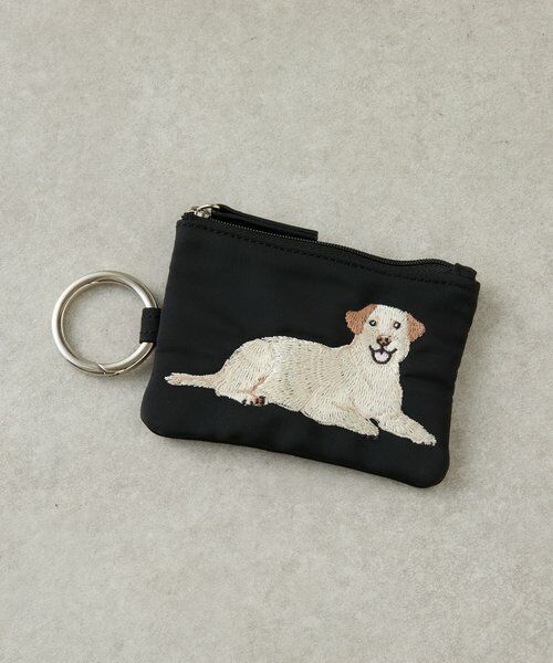ブラックの表地にかわいらしい愛犬たちを刺繍で表現。