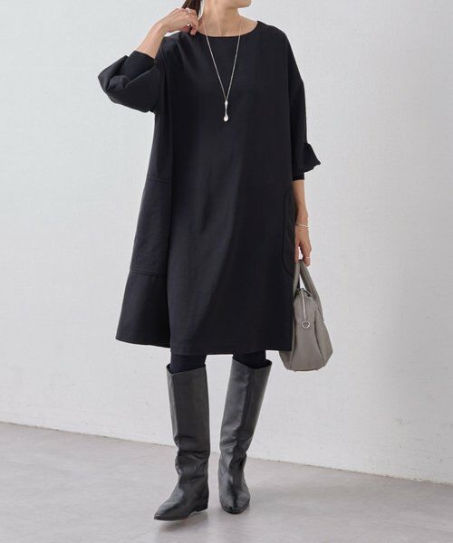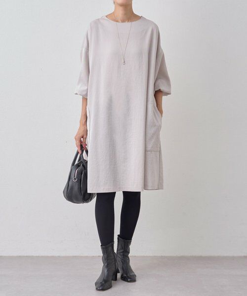 襟元はボートネックでサイドに少しだけ入ったスリットがデザインポイントです。