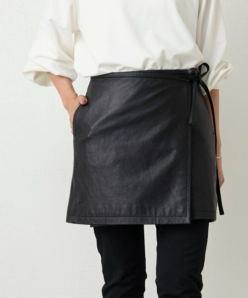 しなやかで柔らかい本革ならではの質感が、シンプルなコーディネートにもモード感と上品さをプラスしてくれます。パンツやレギンスに重ねるだけで、旬のレイヤードスタイルが完成。ウエストはリボンで調整可能なラップ仕様で、内側にスナップボタンが2つあり体型にあわせて着用できます。後ろ姿もすっきり見えるように、縦に切り替えをいれることでヒップラインを自然にカバーしてくれます。