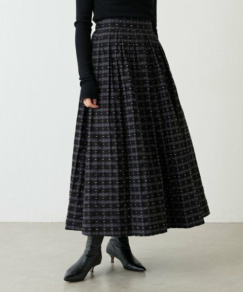 繊細な先染めチェックに、さりげないラメ糸が上品なタックスカート。