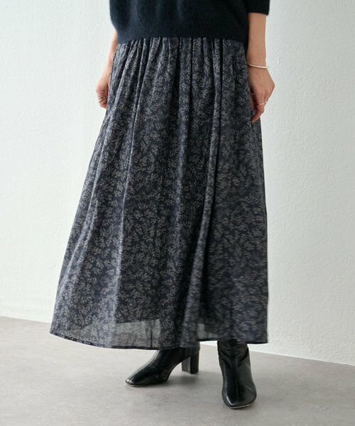 程よい大きさのリーフプリントが、上品な印象で着られるロングスカート。