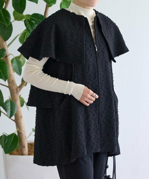 バックスタイルのティアードと、つぶつぶとした糸目が華やかなツイードベスト。