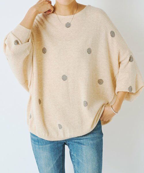 ラメの控えめなニュアンスが、ニットのやさしい印象を引き立てます。