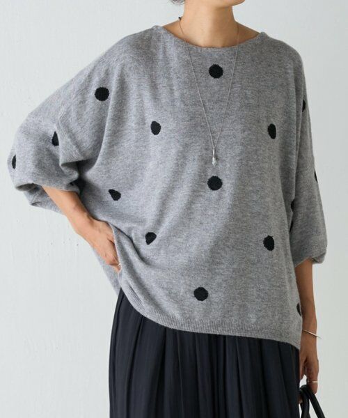 別色のラメ糸で編まれたドットが全体に散りばめられ、さりげないアクセントに。