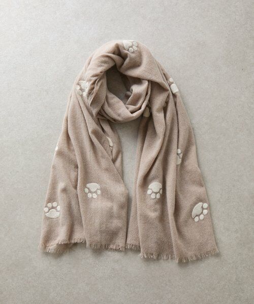 ベージュのストールに犬の足跡を刺繍した遊び心のあるストール。