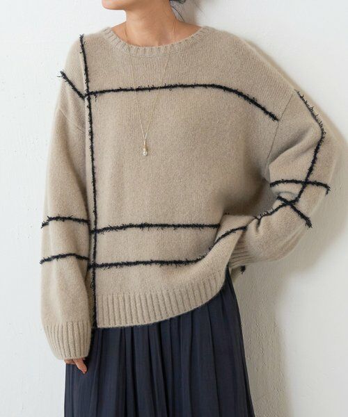 衿元はゆとりのあるクルーネックで大人の抜け感を演出します。