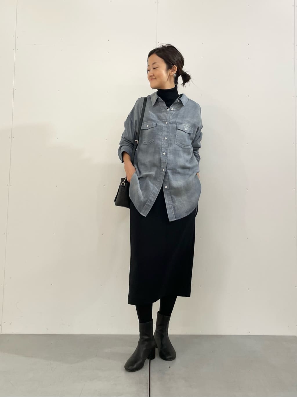 166cm ウェーブ イエベ秋 【デニムシャツ】Fサイズ リアルバイしてから衣替えでしまったことがないこのデニムシャツ。 かる〜い綿100%のシフォン素材で、1枚で着るのはもちろん、 これからの時期はインナーにタートル合わせも可愛いです◎ 【スカート】1サイズ着用 ダンボール生地のタイトスカート。 ほんのり肉厚な生地なのでお尻のラインを拾いにくく、裏地付きなのも嬉しい。 【バッグ】 600mlのペットボトルとミニ折りたたみ傘が並んで入るたっぷり幅で必要な荷物もしっかり入ります。