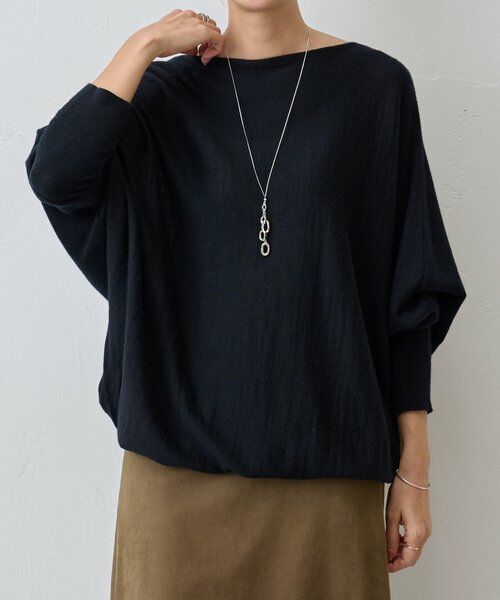 脇のラインを斜めにとったドルマンスリーブのニット。