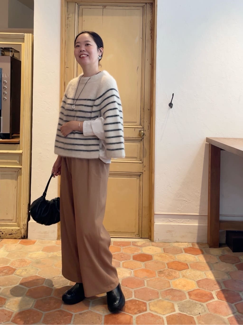 158cm ストレート イエベ秋 【大人気パンツに裏起毛が登場♪】 パンツ/1サイズ着用 ロングセラーのウエストリブシリーズに暖かい裏起毛ができました。 スッと落ち感のあるラインはそのまま! トップスにニットなど合わせても重く見えません。 冬はブラックなど多くなりがちなので、ボトムでキャメルを取り入れるとコーディネートがパッと明るくなるのでおすすめです。