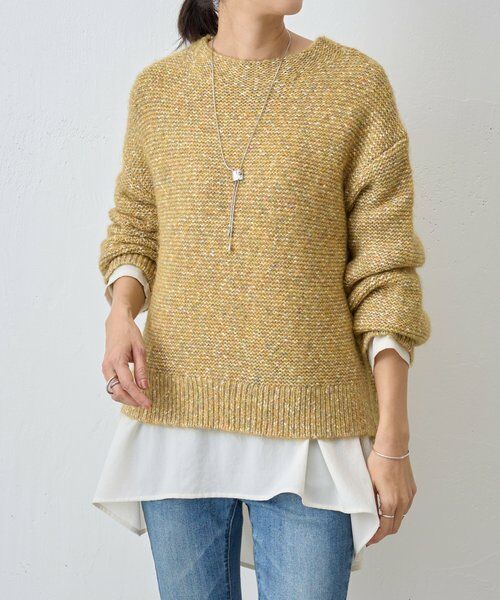 様々なカラーのミックスヤーンで編み上げた温かみのあるニットプルオーバー。