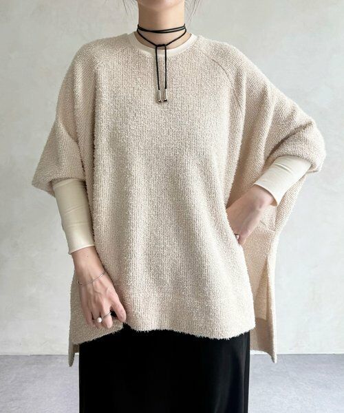 ドルマンスリーブのプルオーバーで、ビッグシルエットで身幅があり腰まわりがすっぽりと隠れます。