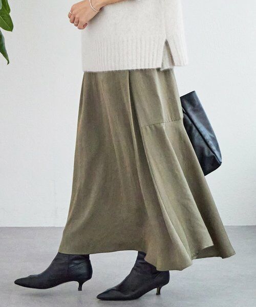光沢感がある生地で軽さと艶をプラスしてくれるロングスカート。