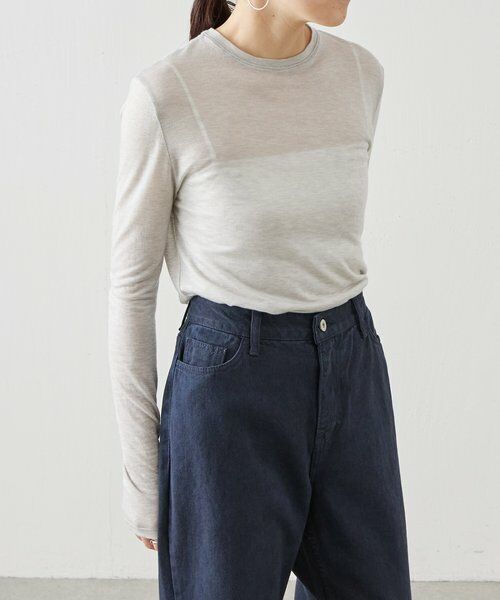 ウール混のテンセル素材を使用したライトグレーのシアーカットソー。