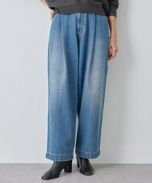 フロントタックをたっぷりといれ、腰周りにゆとりを持たせたルーズシルエット。