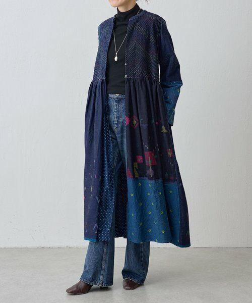 裏地のシルク生地は袖部分にはさらに染目を加えて身頃とは異なる色味に。カラフルなミシンステッチで模様を描き、袖口を折り返して柄を見せるのもおすすめです。