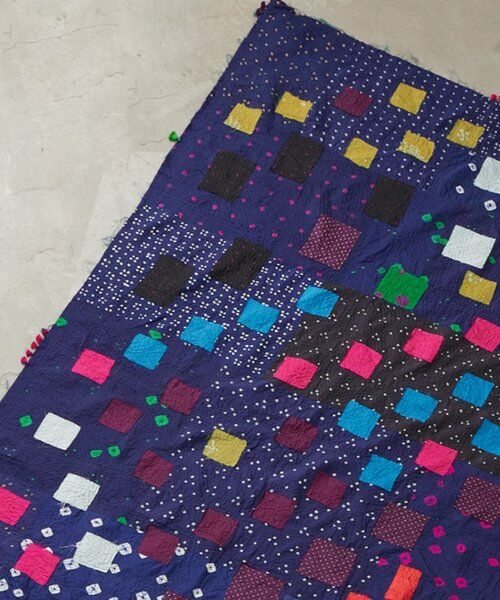 カンタ刺繍を施したシルク素材のマルチカバー。
