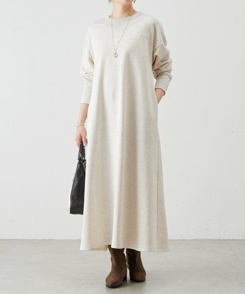 衿元の切り替えがデザインポイントになったスウェットワンピース。