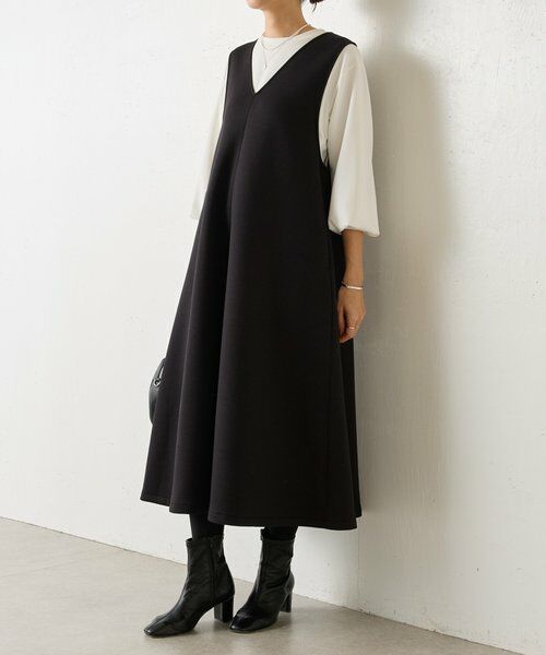 もちっとした程よい厚みのあるダンボールカットソー生地を使用したワンピース。