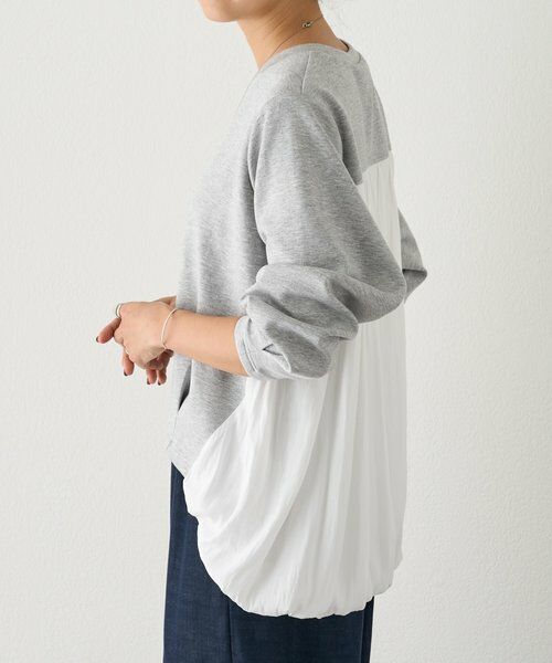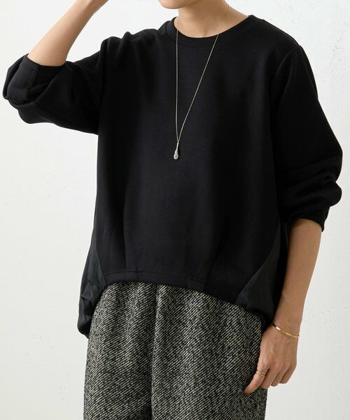 裾から後ろ身頃にかけて施された割繊素材との切り替えがポイントのプルオーバー。