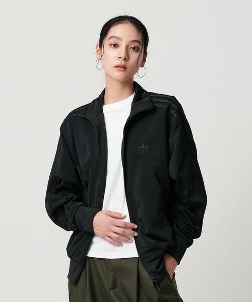 <adidas>の象徴であるスリーストライプスが袖に、トレフォイルロゴ刺繍が胸にあしらわれています。