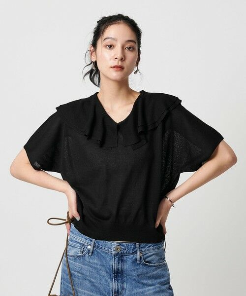 甘さのある大胆なフリルディテールながら、ドルマンスリーブでリラックス感のあるシルエットが、上品なカジュアルスタイルを演出してくれる一着。