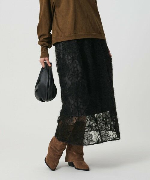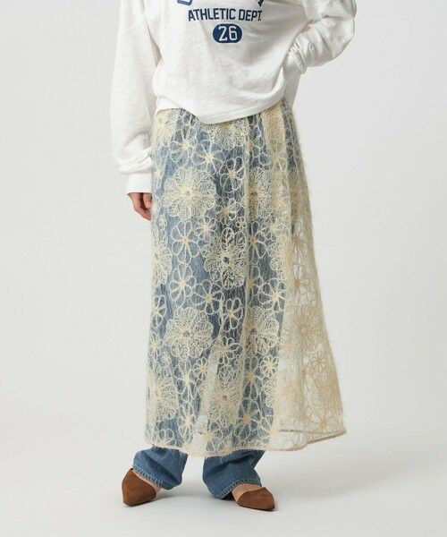 繊細なチュールに起毛糸で描いた花柄刺繍が映える、華やかで上品なギャザースカート。