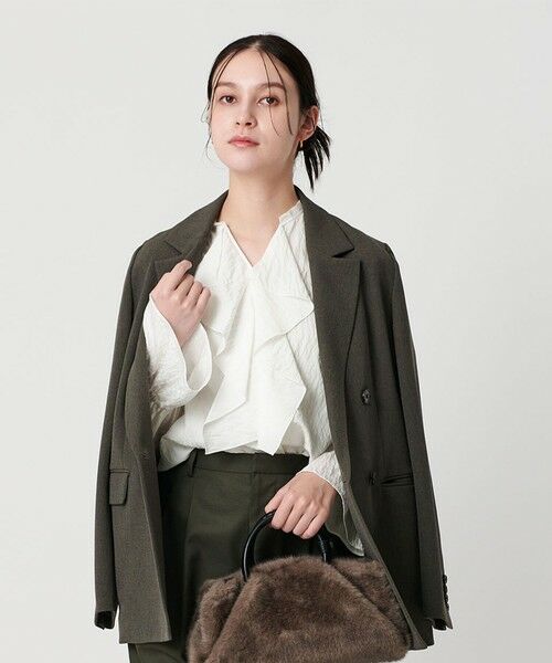 メイントップスとしてはもちろん、ジャケットのインにも映えるロングシーズン着回しの効くブラウスです。