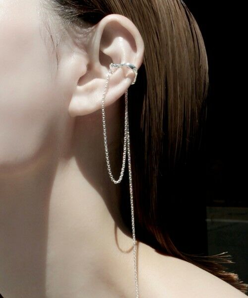 シルバーカラーと光の反射で輝くチェーンは耳元で存在感を放つ一品。