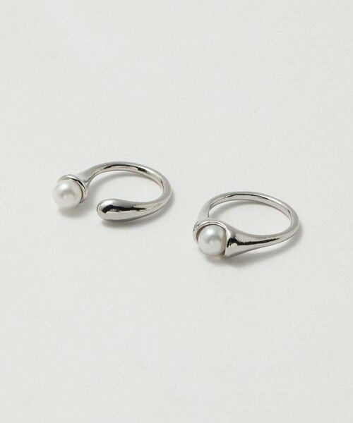 小粒の人工パールをあしらった、モダンなデザインが魅力の2本セットリング。