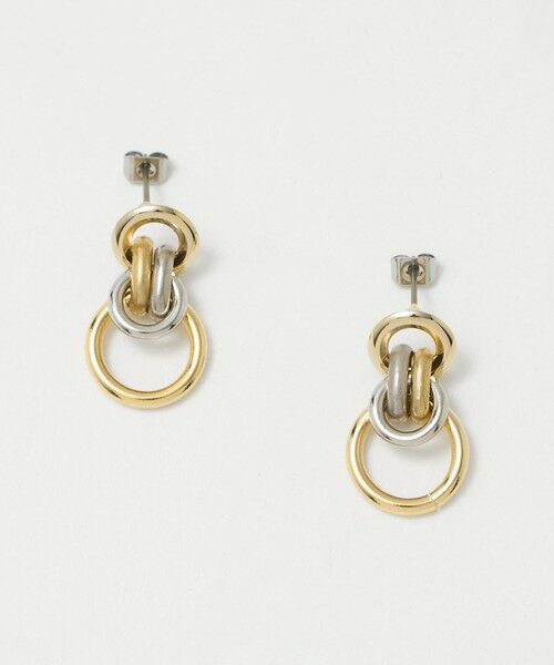 大小のリングモチーフを組み合わせ、ミックスカラーで仕上げたピアス。