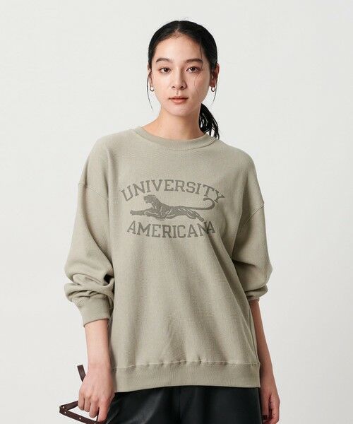 ニュアンスカラーのボディにプリントされたカレッジロゴでヴィンテージライクな雰囲気が漂います。