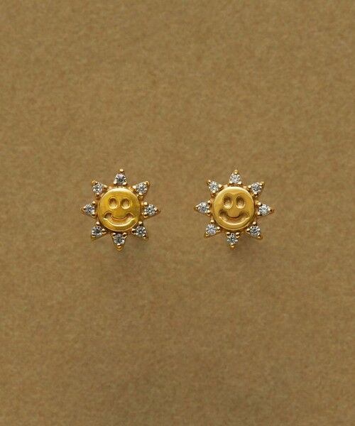 中央の模様を囲むようにストーンをあしらった、太陽モチーフのピアス。