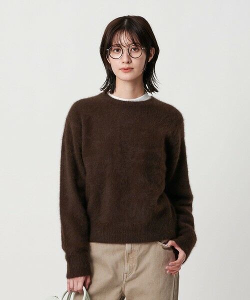 ふんわりとやさしい毛足の素材感がシーズンムードたっぷりなニットプルオーバーです。