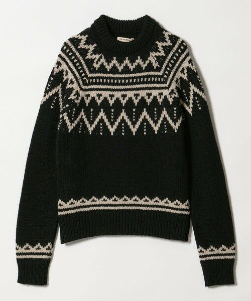 シックな配色の柄で寒い季節に映えるニットは、洗練された大人のカジュアルスタイルにぴったりです。