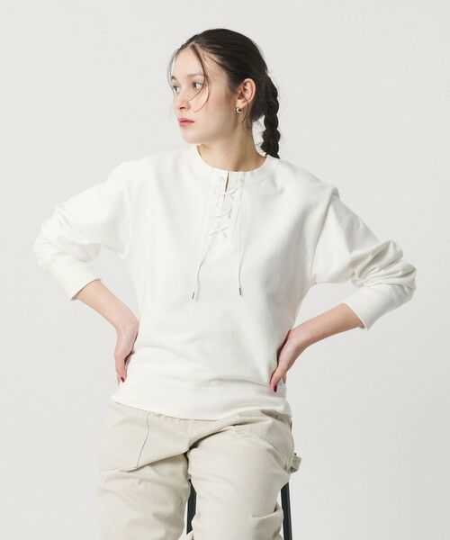 フロントのレースアップがアクセントになったスウェットプルオーバー。