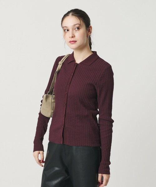 変形リブの凹凸感が特徴の襟付きカーディガン。