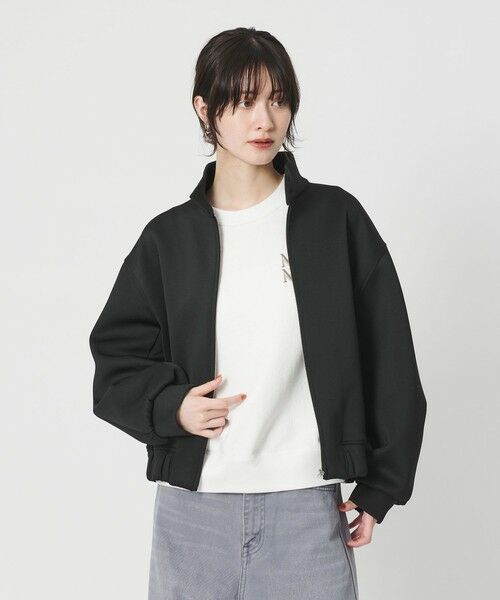 ハリ感と軽さが魅力のダブルニット素材を使用した、ジップアップブルゾン。