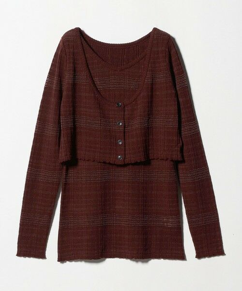 タンクトップとショート丈カーディガンのアンサンブルニット。