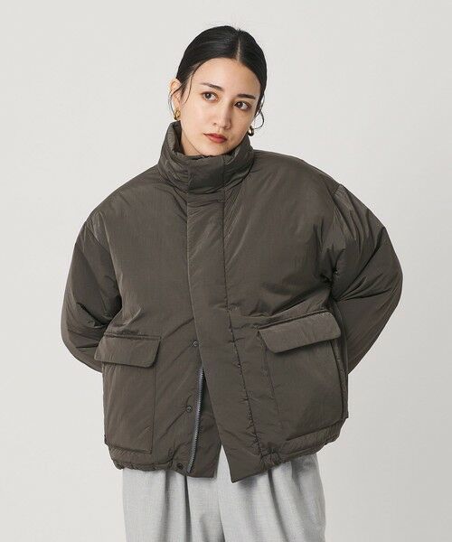 高めに変更したスタンドカラーがこなれたムードを演出してくれる中綿のアウターです。