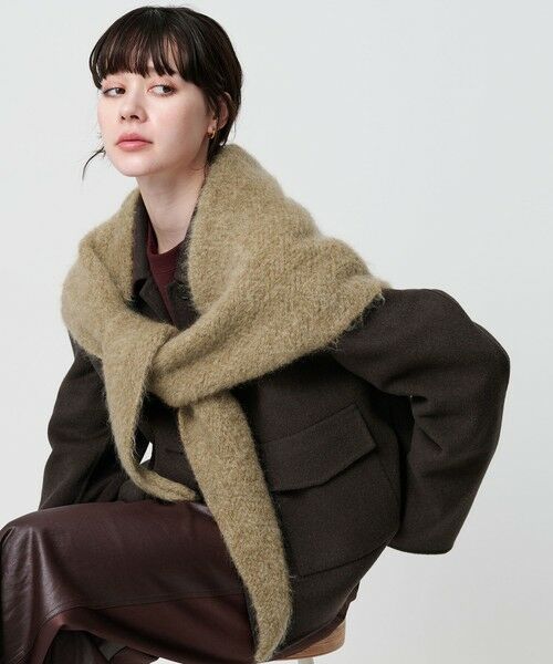スカーフのようにさっと纏うトライアングルシェイプのマフラー