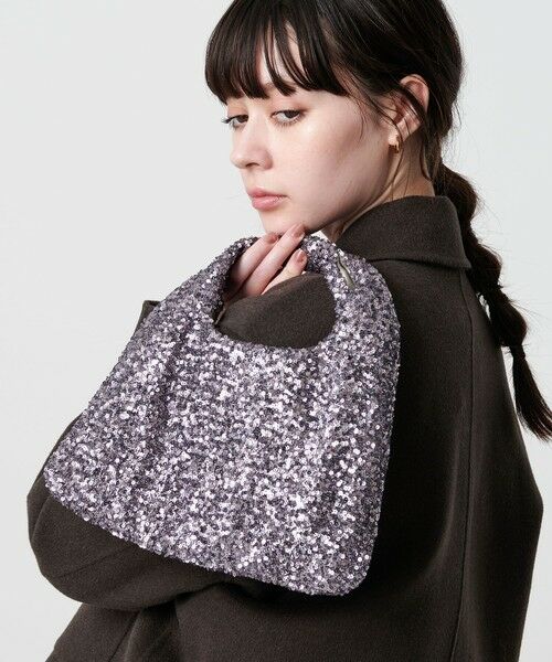 細かなスパンコールをたっぷりと縫い付けた、キャッチーなバッグ。